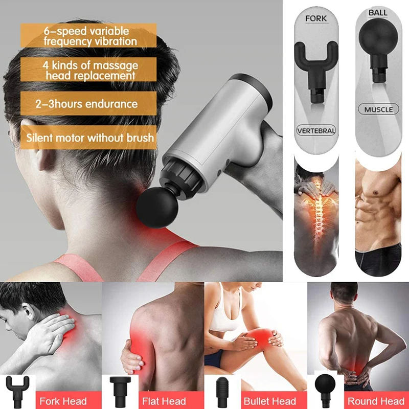 এই Muscle Massage Gun Deep Tissue Massager একটি উন্নতমানের এবং শক্তিশালী ডিভাইস, যা বিশেষভাবে যেকোনো ব্যাথা, বাতব্যাথা এবং প্যারালাইস রোগীদের জন্য কার্যকর। পেশীর ব্যথা কমাতে ও রক্ত সঞ্চালন বাড়াতে বিশেষভাবে উপযোগী। এটির একটি ম্যাসাজার গান, ৪টি হেড ও একটি চার্জার থাকে। এটিতে আছে ভাল মানের হাই-ফ্রিকোয়েন্সি ভাইব্রেশন থেরাপি। আমাদের Massager টির মাথা মেটাল বডির মানে লোহার, তাই দাম একটু বেশি।